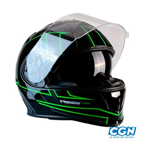 FULLFACE HELM DOPPELVISIER TRENDY 19 T-602 SPIDER LACKIERT SCHWARZ / GRÜN S61-62 XL