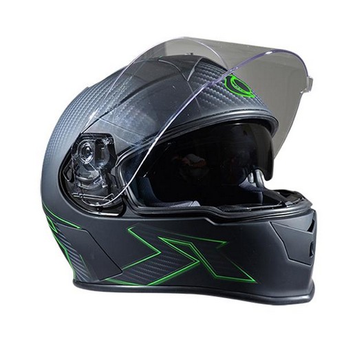 FULLFACE HELM MIT DOPPELVISIER TRENDY R-ZONE SCHWARZ / GRÜN 53 - 54